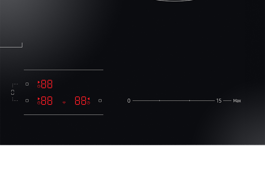 – Bảng điều khiển cảm ứng trượt cho bạn cài đặt và tùy chỉnh mức nhiệt từ 1 đến 15 cho từng vùng nấu mượt mà với thao tác trượt tay nhẹ trên bếp.