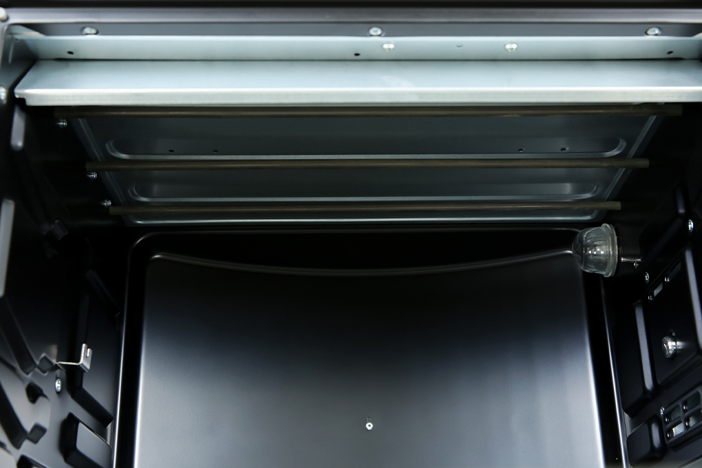 Lò làm nóng bằng thanh nhiệt với quạt đối lưu đẩy khí nóng luân chuyển nhanh và đều khắp khoang lò, giúp món nướng chín đều, ngon, đẹp màu