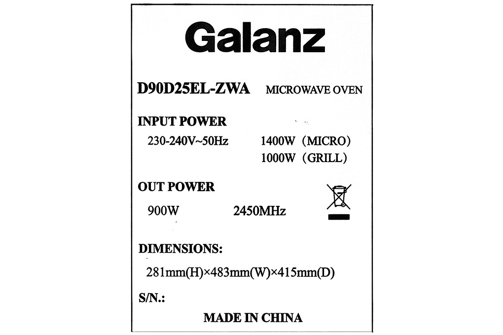 Công suất mạnh mẽ của Lò vi sóng Galanz D90D25ETL-ZWA 25 lít