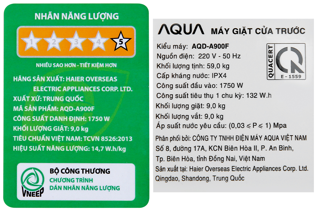 Máy giặt Aqua Inverter 9.0 KG AQD-A900F W