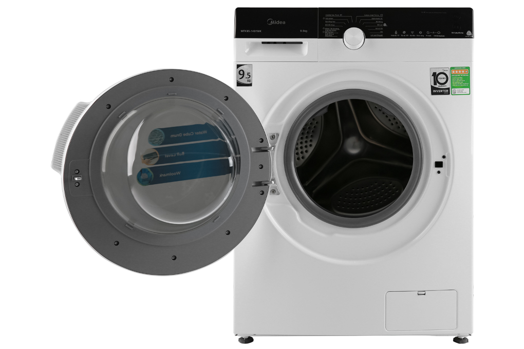 Máy giặt Midea với khối lượng 9.5 kg sẽ cực kì thích hợp với những gia đình trên 6 thành viên hoặc ít hơn nhưng có nhu cầu giặt 1 lần nhiều đồ, đáp ứng nhu cầu giặt giũ đa dạng của bạn.