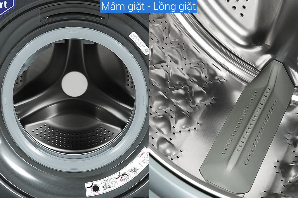 – Lồng giặt làm từ thép không gỉ hạn chế mảng bám, vi khuẩn tích tụ, sinh sôi trong quá trình sử dụng ở môi trường thường xuyên ẩm ướt.