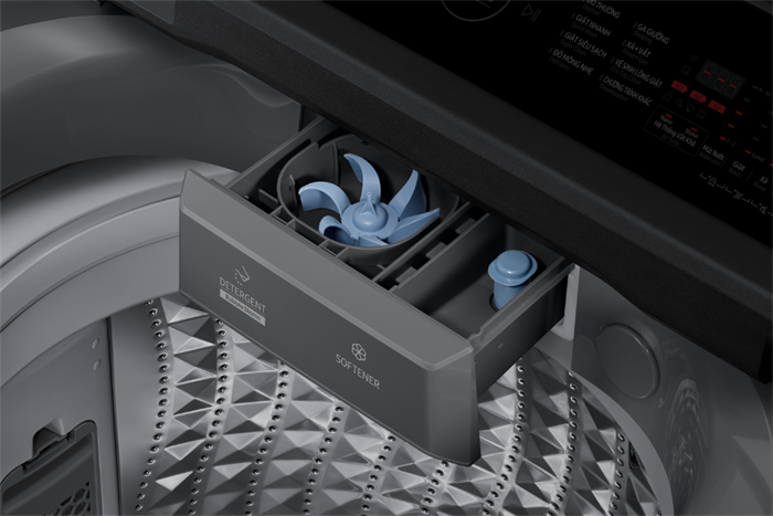 – Khay tạo bong bóng siêu mịn BubbleStorm hoạt động với cơ chế sử dụng nước, không khí và chất giặt tẩy kết hợp với chuyển động xoay của cánh quạt mới tạo bọt siêu mịn đổ xuống lồng giặt.