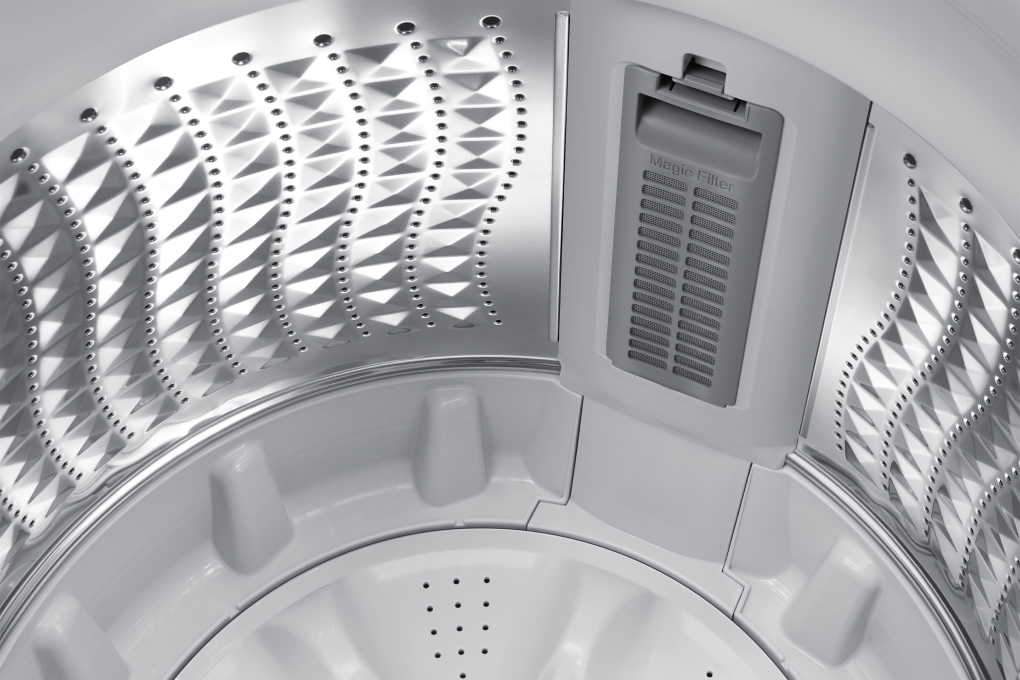 – Bộ lọc xơ vải Magic Filter: giúp lọc sạch lông xơ, bụi bẩn, xơ vải, hạn chế nguy cơ gây tắc đường ống thoát nước, giữ cho trang phục bạn tươm tất, sạch đẹp.