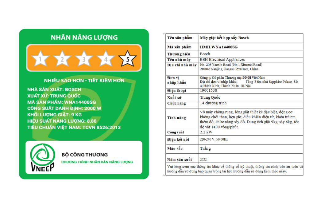 – Mẫu máy giặt Bosch lồng ngang này có khả năng giặt được 9 kg và sấy khoảng 6 kg, đáp ứng nhu cầu sử dụng cho những gia đình từ 3 – 5 người.
