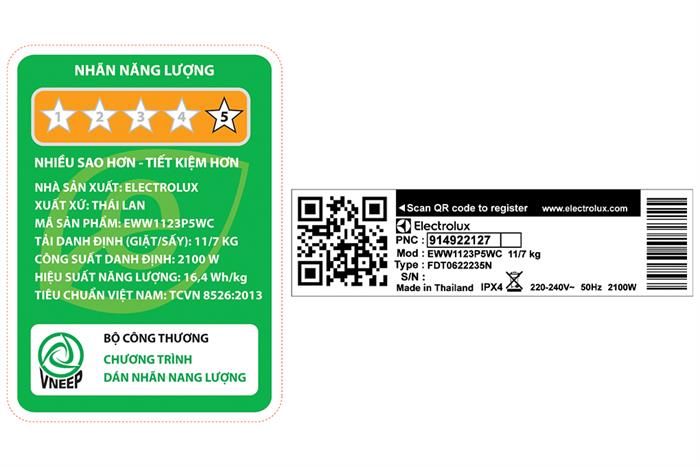 - Công nghệ Hygienic Care loại bỏ vi khuẩn đến 99.9% sau mỗi lần giặt.
