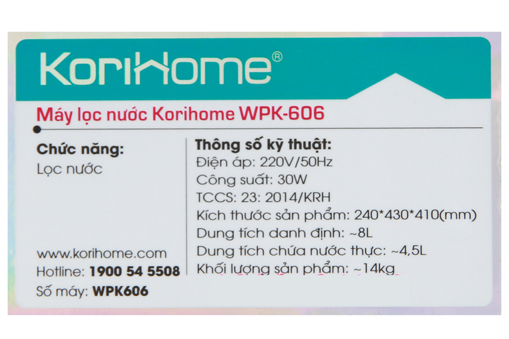Máy lọc nước RO Korihome WPK-606 gọn gàng, tinh tế, dùng tốt, an toàn, tiện lợi và hiện đại, giải pháp nước sạch hoàn hảo cho gia đình.