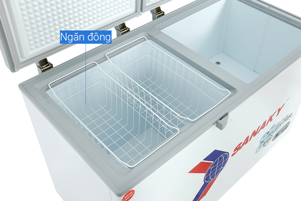 – Sanaky VH-5699W4K được thiết kế kiểu tủ nằm, thuộc dòng tủ 1 ngăn đông và 1 ngăn mát với 2 nắp mở riêng biệt, mang đến sự tiện lợi trong việc bảo quản và tìm kiếm thực phẩm cần dùng một cách nhanh chóng.