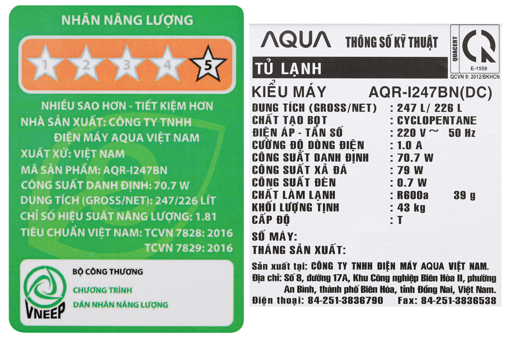 Được trang bị công nghệ Inverter giúp bạn tiết kiệm điện trong quá trình sử dụng. Bên cạnh đó, máy nén Inverter còn giúp tủ lạnh Aqua vận hành êm ái, không gây tiếng ồn làm ảnh hưởng đến sinh hoạt trong gia đình bạn mà còn giúp bạn giảm chi phí tiền điện hàng tháng.