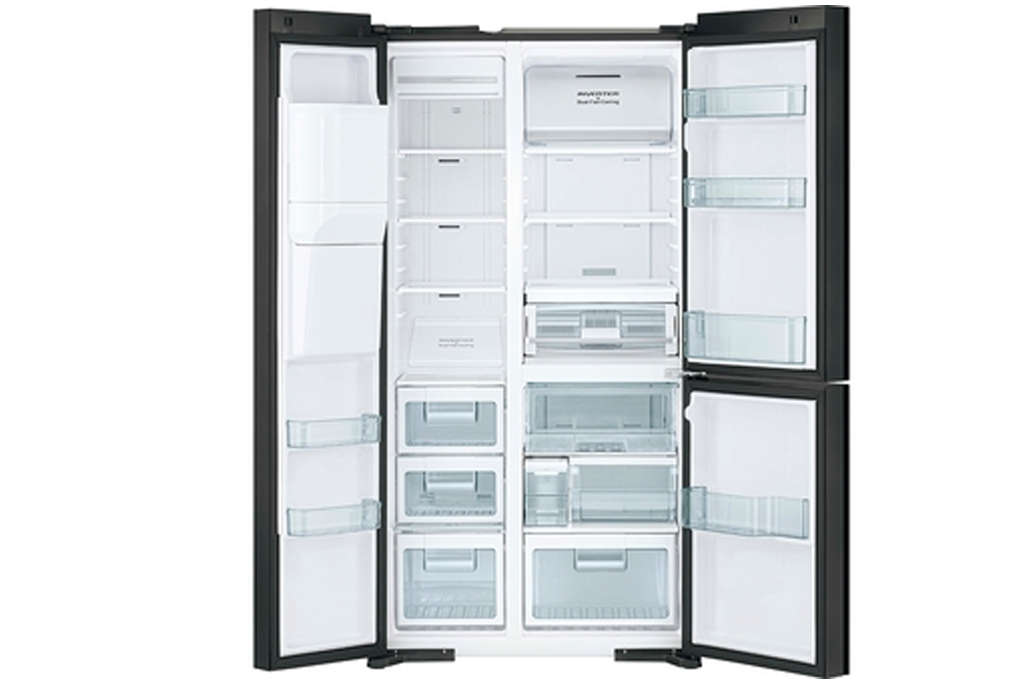 Tủ lạnh Hitachi R-MX800GVGV0 GBK là dòng tủ lạnh Side by side 3 cửa có kiểu dáng hiện đại, đẹp mắt cùng tông màu đen sang trọng làm nổi bật mọi không gia nhà bếp. Bề mặt tủ bằng kính sáng bóng, ít bám bẩn rất tiện cho việc lau chùi. Tủ được trang bị nhiều công nghệ hiện đại đảm bảo việc giữ lạnh cho thực phẩm tốt nhất; công nghệ làm lạnh bằng hệ thống quạt kép, công nghệ Inverter kết hợp cảm biến Eco tiết kiệm điện năng, bộ lọc Triple Power lọc khử mùi diệt khuẩn. Đặc biệt ở phiên bản năm 2021 này, dòng tủ lạnh có trang bị thêm ngăn chân không bảo quản. Tủ có bảng điều khiển cảm ứng và màn hình hiển thị được bố trí ngay bên ngoài cửa tủ, để bạn dễ dàng theo dõi trạng thái hoạt động cũng như điều chỉnh các thông số một cách dễ dàng. Cách bố trí này sẽ giúp tiết kiệm điện năng tiêu thụ, khi người dùng sẽ không cần phải mở tủ. Tủ lạnh Side By Side Hitachi Inverter R-MX800GVGV0 GBK có chức năng lấy nước và đá bên ngoài, lưu trữ và bảo quản thực phẩm vô cùng tiện lợi.