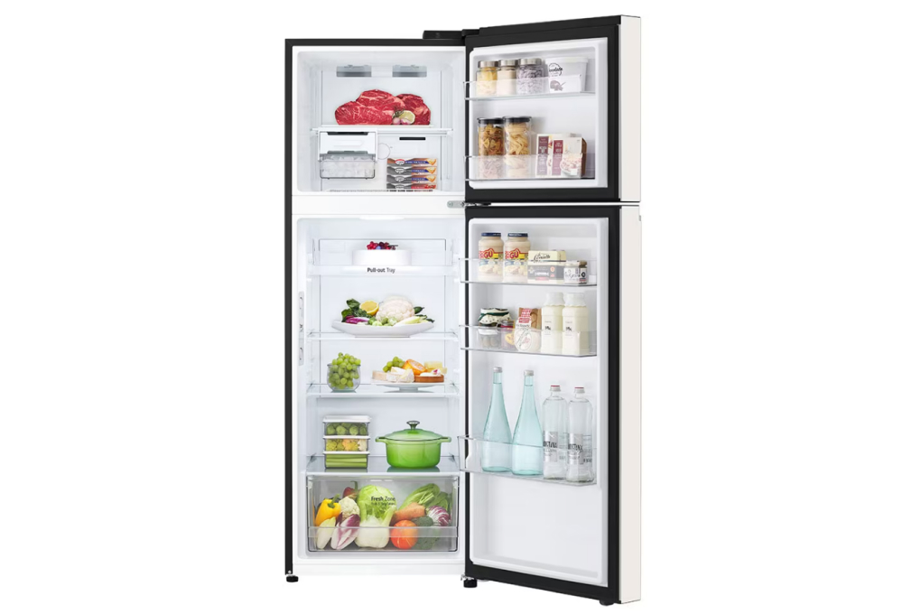Dung tích ngăn lạnh 255 lít, gồm có 1 ngăn chứa Pull-out Tray, 2 kệ chia làm 3 ngăn, 1 hộc đựng rau củ và 3 khay chứa (bên cánh cửa).
