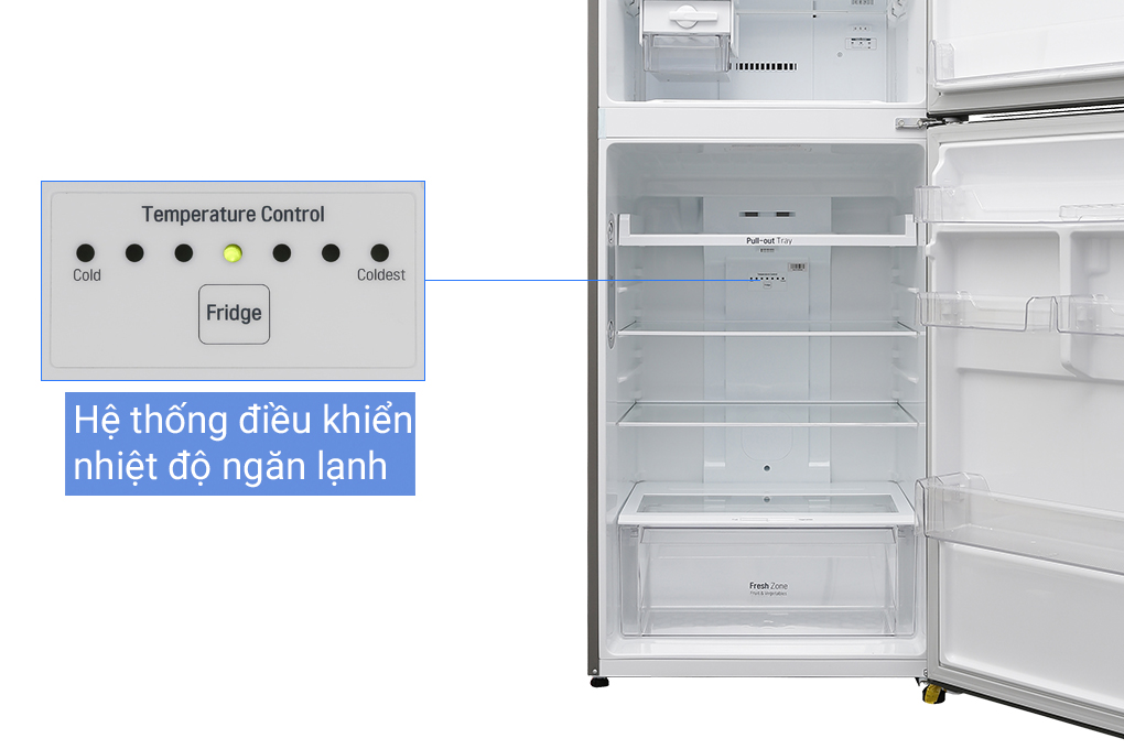 Tủ lạnh LG với dung tích 393 lít, phù hợp với gia đình có 3 – 4 thành viên thoải mái lưu trữ thực phẩm.