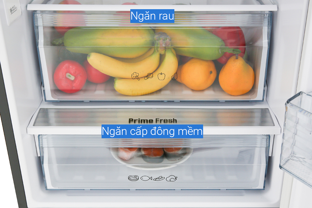 • Ngăn cấp đông mềm thế hệ mới Prime Fresh+ bảo quản thịt, cá không cần rã đông vô cùng tiện lợi.