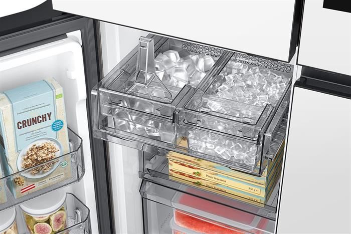 – Tủ lạnh Samsung Multi Door 4 cánh thuộc dòng cao cấp Bespoke, cửa tủ được làm bằng mặt gương soi mang lại cảm giác sang trọng cho căn bếp của bạn.
