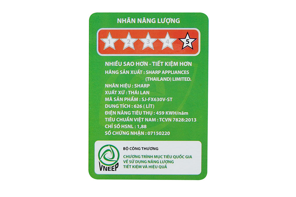 Tủ lạnh Inverter này với xếp hạng tem năng lượng 5 sao đã cho ta thấy đây là một chiếc tủ lạnh có khả năng tiết kiệm điện đáng kể cho gia đình bạn. Trung bình khi sử dụng chiếc tủ lạnh này sẽ chỉ tiêu tốn khoảng 459 kWH/năm, tương đương khoảng 1,25 kW/ngày, cực kỳ ấn tượng khi so với dung tích hơn 600 lít của tủ, chỉ ngang bằng mức tiêu thụ của một tủ lạnh thường trên dưới 150 lít.